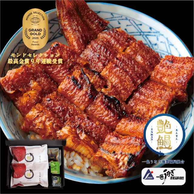 うなぎ蒲焼:うなぎ(三河一色産)、木桶仕込み有機醤油(有機国産大豆使用)、有機純米吟醸酒(有機国産山田錦使用)、有機本みりん(有機もち米、有機米麹、有機焼酎使用)、素焚糖、うなぎのたれ、みりん風調味料/酒精、カラメル色素、調味料(アミノ酸)、(一部に小麦・大豆を含む)