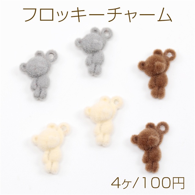 フロッキーチャーム 熊 くま クマ型チャーム テディベアチャーム アニマルチャーム カン付き 約9×15mm (4ヶ)