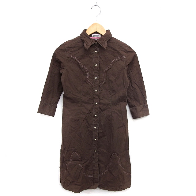 【中古】パープルアンドイエロー パープル&イエロー Purple&Yellow シャツワンピース フレア ひざ丈 ステンカラー 綿