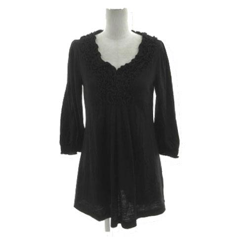 【中古】エムプルミエ ブラック M-Premier BLACK ブラウス フリル 七分袖 チュニック丈 日本製 ウール ブラック 黒 36