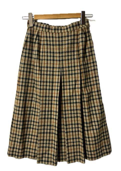 【中古】ダックス DAKS ウール チェック ロングスカート フレア ブラウン ボトムス レディース