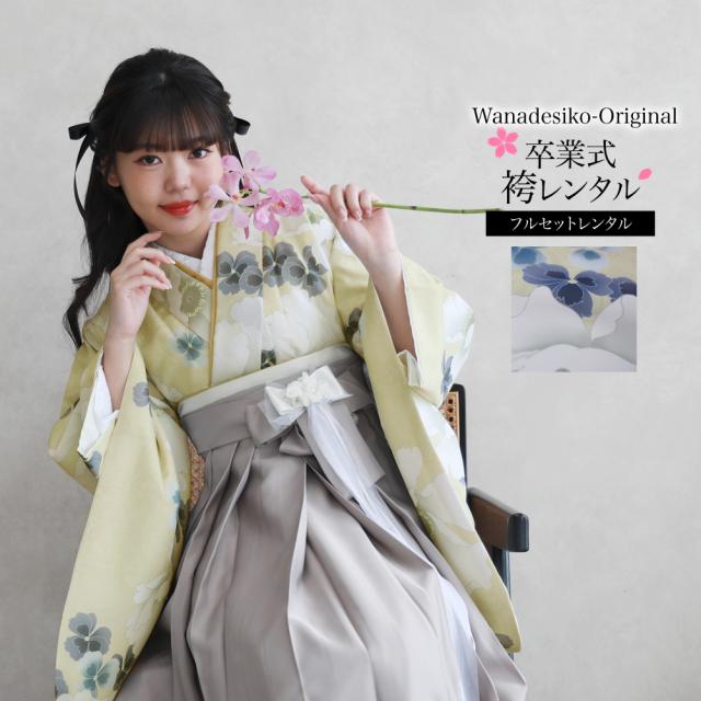 履物が選べるレンタル 卒業式 袴 レンタル 大学生 フルセット 袴セット 卒業式袴セット 2尺袖着物&袴フルセットレンタル シンプル 「クリーム地に白の大花とグレー小花」 上品 大人 レディース 女の子 先生 オリジナル