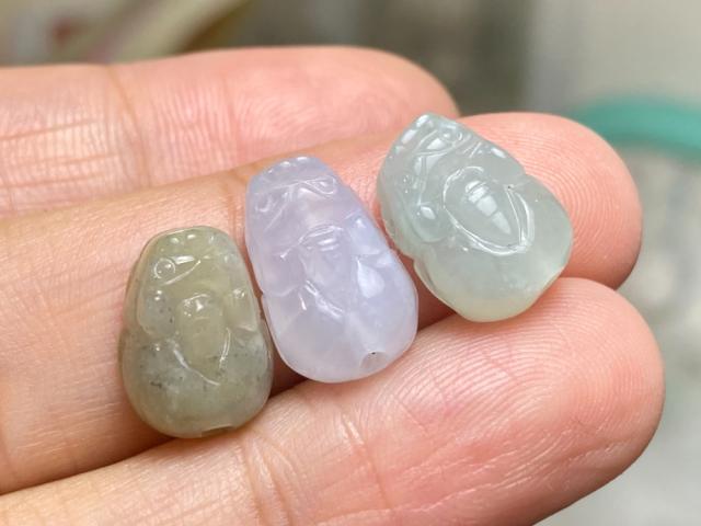 3点セット白瓷 グレー青 土黄色 通穴 貔貅 本翡翠 ミャンマー産 A貨 財布貔貅 御守、一点物です
