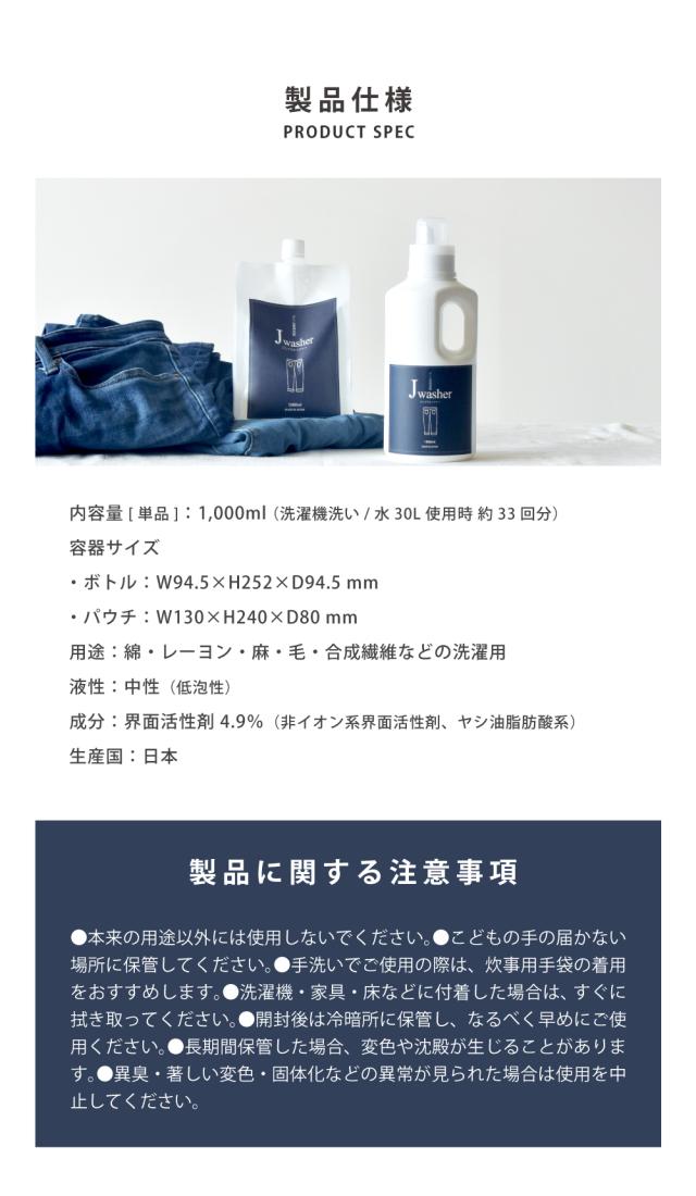 デニム用洗剤 J-Washer 1000ml | デニム専用洗剤 オシャレ着洗剤 おしゃれ着洗い デニム ジーンズ 洗剤 色物洗い 漬け置き 色落ち防止 無着色 無香料 無添加 蛍光増白剤フリー 衣類用 液体洗剤 衣類洗剤 衣類用洗剤 洗濯 洗濯用洗剤 中性洗剤 ジェイウォッシャー 日本製