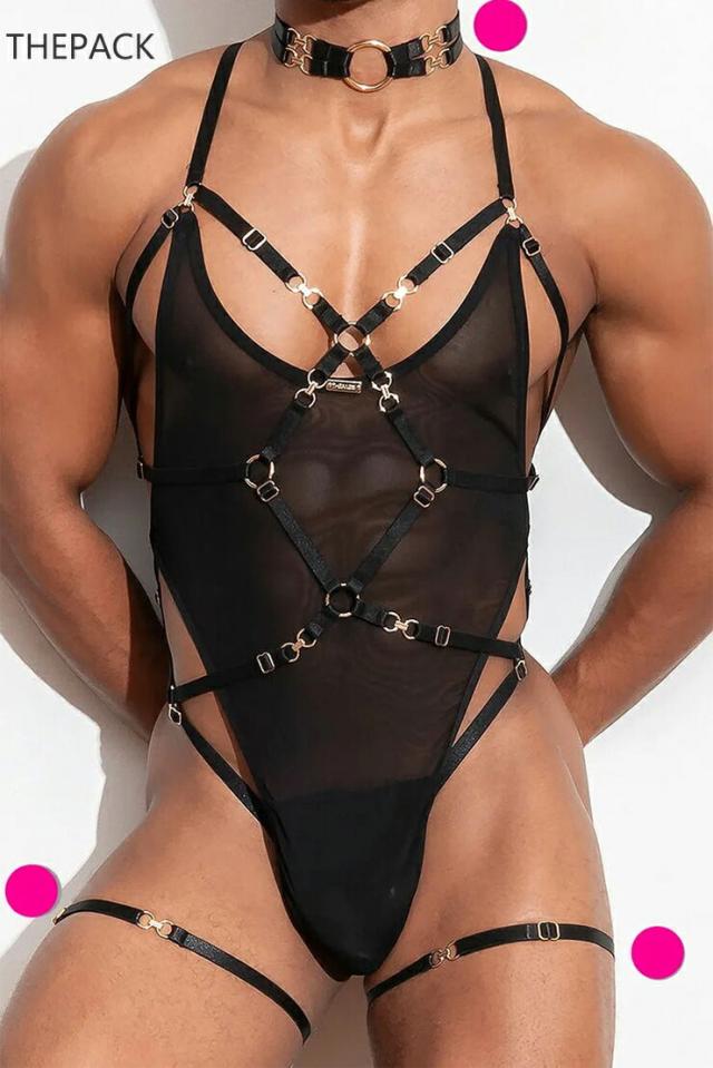 GUILTY Boudoir Setメンズ 本革と高品質金属製の装飾品 3点セット エレガントなチョーカー サテンゴムガーター付属品 セクシー 情熱(下着別売り)