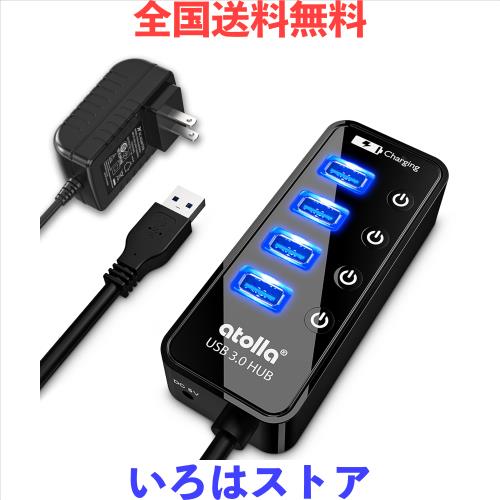 USB3.0ハブ 電源付き, atolla 4ポート高速USB3.0 の 拡張+ 1充電ポート USB Hub 独立スイッチ付 5V/3A ACアダプタ付き