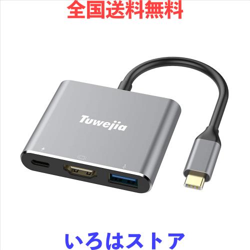 USB Type c HDMI アダプタ Tuwejia usb タイプc 4K 解像度 hdmiポート+USB 3.0ポート+USBタイプC急速PD充電ポート変換 アダプタ UHD Mac