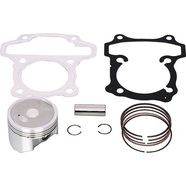 各ボアアップKITに標凖装備のピストン、ガスケット類のセットです。補修等にご使用下さい。排気量、シリンダーヘッドの燃焼室形状に合う理想的な圧縮比を実現させたピストン形状となっています。