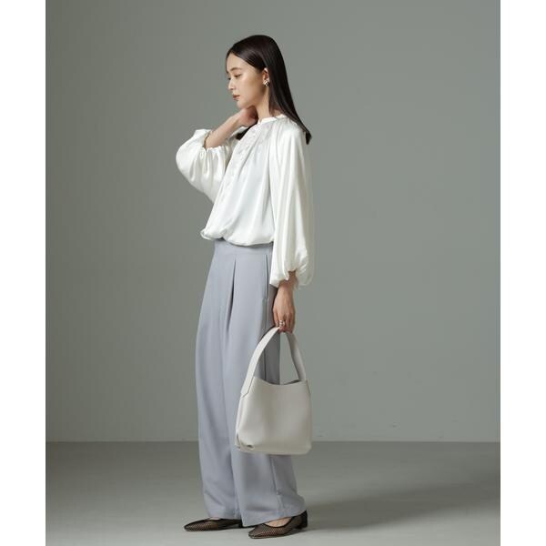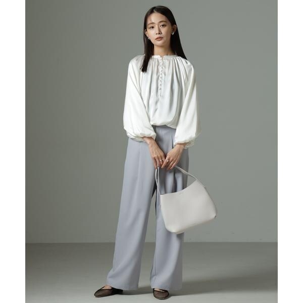 前後2wayサテンボリュームスリーブブラウス