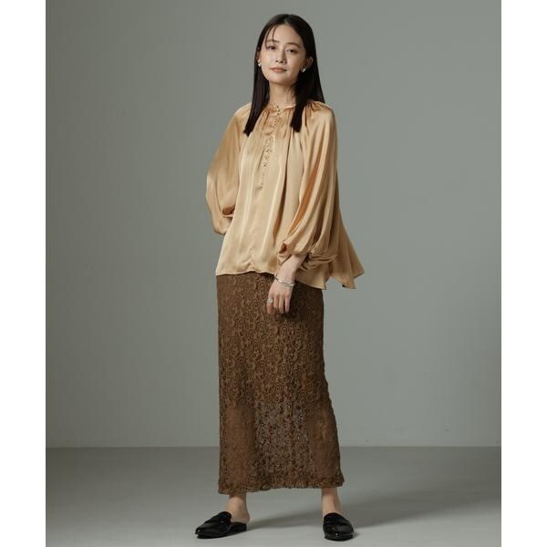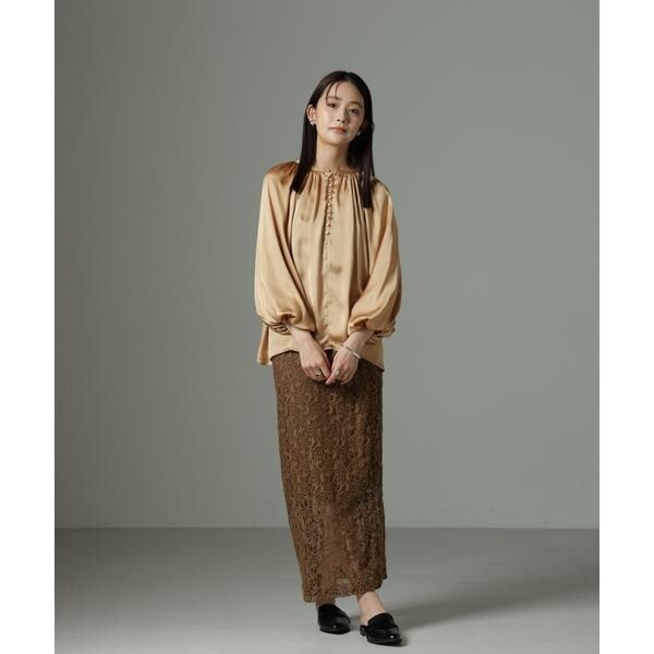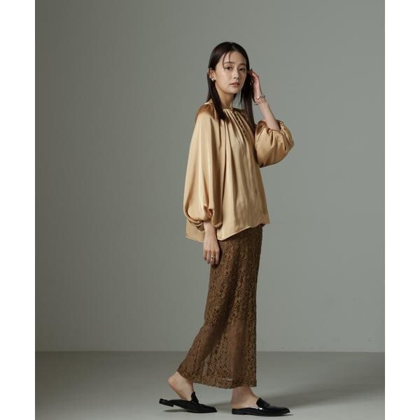 サテン素材が上品なブラウス