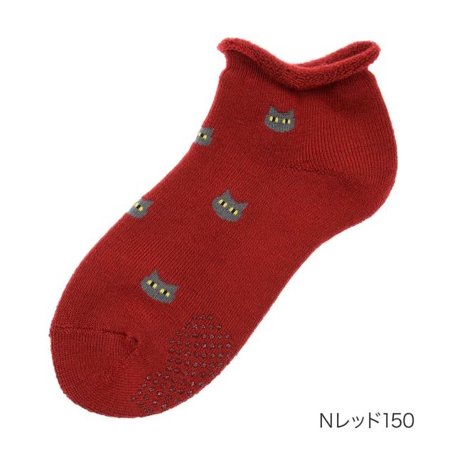 【マッキントッシュフィロソフィー】 ルームソックス 靴下 ネコ総柄 スニーカー丈 滑り止めつき