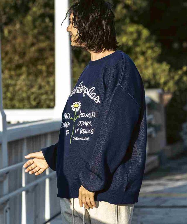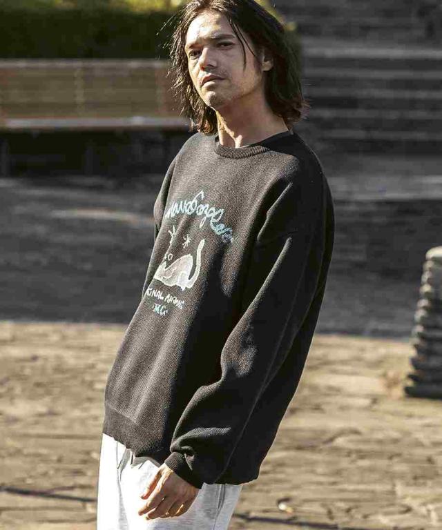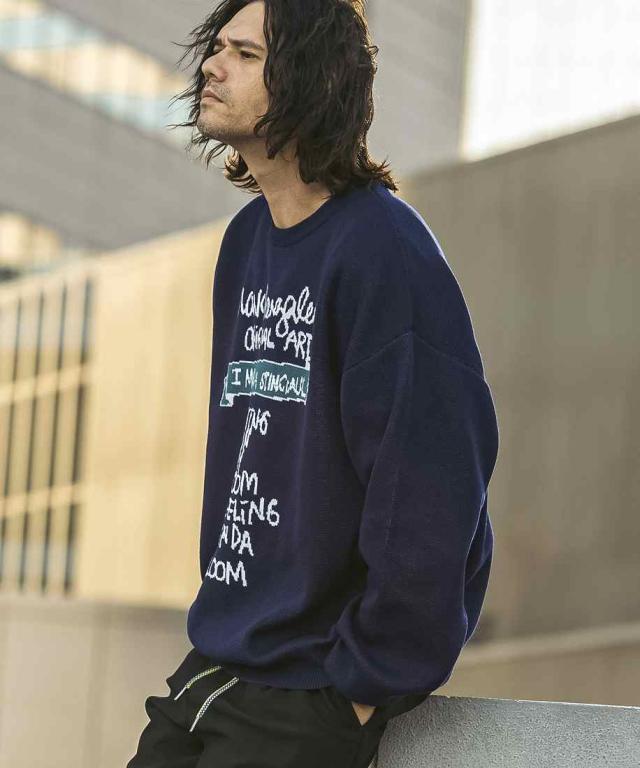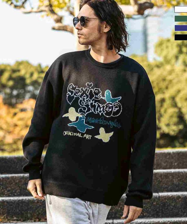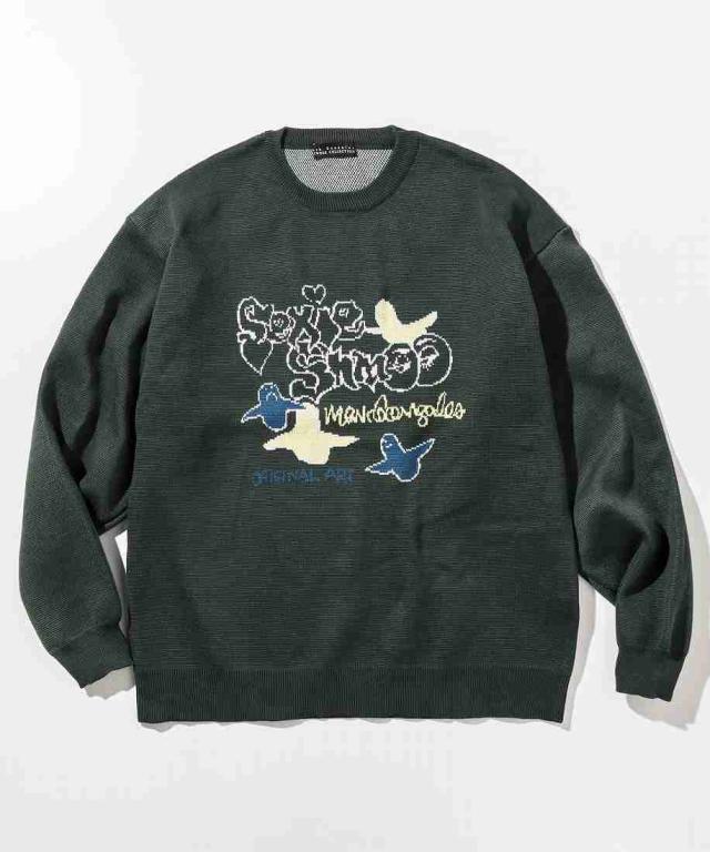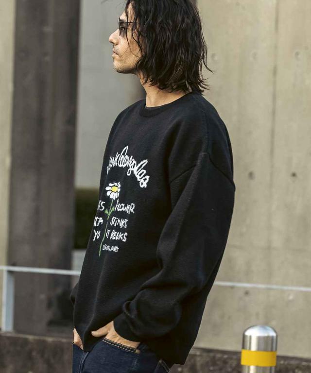 マーク・ゴンザレス(MARK GONZALES)/MARK GONZALES フロントジャガードクルーネックニット/4type/3colors
