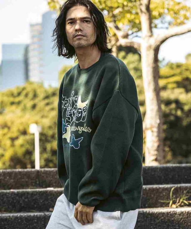 MARK GONZALES フロントジャガードクルーネックニット/4type/3colors