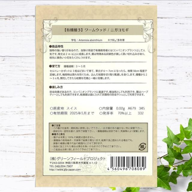 【有機種子】 ワームウッド/ニガヨモギ Sサイズ 0.02g 種蒔時期 3〜5月