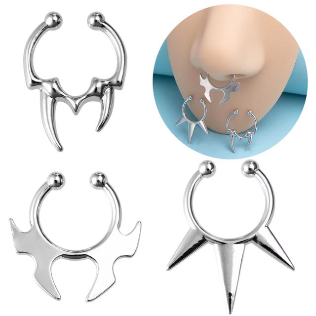 [ノンホールピアス] パンクセプタムリングクリップ ノンホール 1個販売 フェイクリングピアス フープピアス風 フェイク 鼻ピアス ノーズクリップ 耳たぶ 軟骨 イヤーカフ ヘリックス メンズ レディース イヤリング ノーズリング シルバー 牙 キバ スパイクコーン パンク