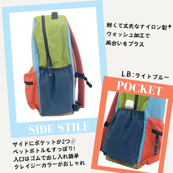 Ocean&Ground 大きいサイズ DAYPACK CRAZY MORE Lサイズ キッズ ジュニア ナイロンリュック リュック A4対応 大容量 17L シンプル カラフル クレイジー 男の子 女の子 小学生 中学生 遠足 オーシャンアンドグラウンド 4425152