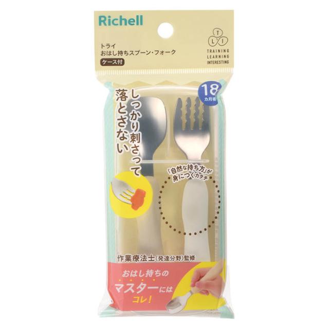 リッチェル トライ おはし持ちスプーン・フォーク(ケース付) 18カ月頃から(1個)[食器セット]