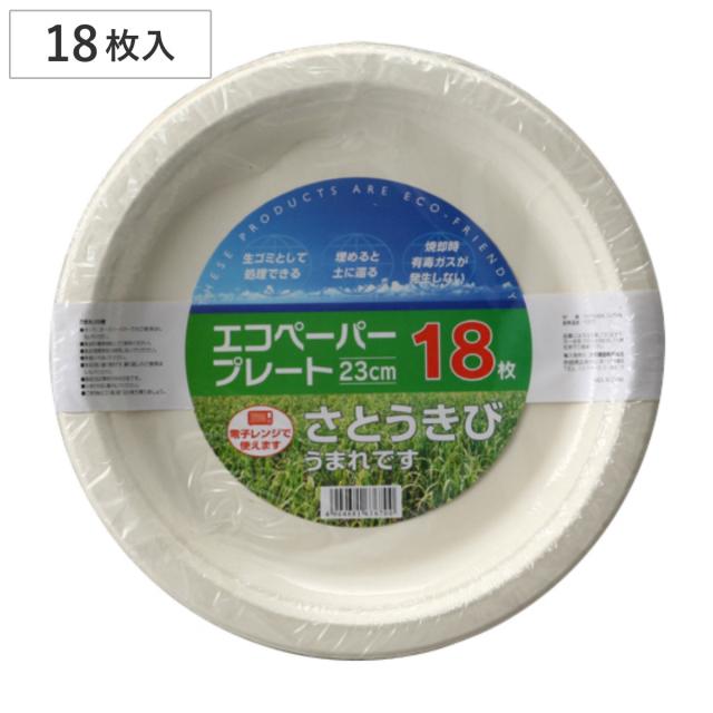 紙皿 エコペーパープレート23cm 18枚入 ( 電子レンジ対応 丸型 23センチ ペーパープレート 紙プレート さとうきび 硬い 丈夫 紙 プレート 使い捨てプレート 取り皿 皿 簡易食器 紙容器 電子レンジ 対応 OK )