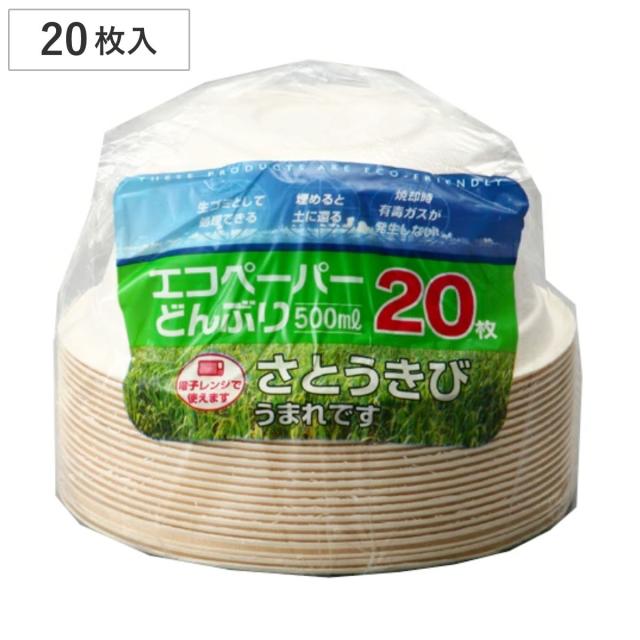 紙皿 エコペーパーどんぶり500ml 20枚入 ( 紙容器 どんぶり 汁物 丼 使い捨て容器 業務用 電子レンジ対応 使い捨て 容器 うどん ラーメン 硬い 丈夫 紙 プレート 使い捨てプレート 取り皿 皿 簡易食器 電子レンジ 対応 OK )