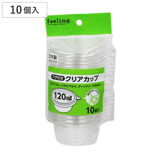 クリアカップ feeling 120ml 10組入 直径8.6×高さ4cm ( 蓋付き容器 使い捨て フタ付き 簡易 プラスチック容器 フルーツ容器 デザートケース フルーツ 小物入れ 果物 食品衛生法適合品 日本製 )