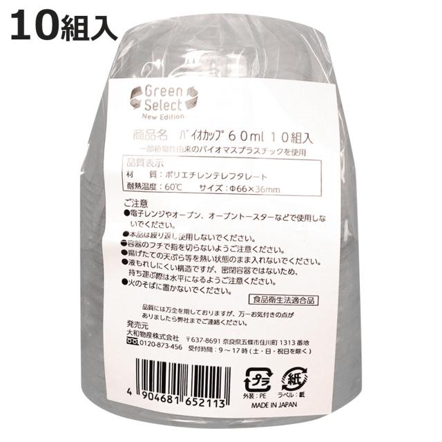 使い捨て容器 Green Select N バイオカップ 60ml 10組入 ( 使い捨て プラスチック容器 透明 クリアカップ カップ 容器 日本製 使い捨てカップ シンプル アウトドア BBQ イベント ピクニック 子供会 パーティ エコ キャンプ クリア )