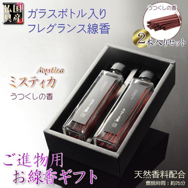 進物用線香・高級線香【ガラスボトル入り:ミスティカ うつくしの香 2本入り 化粧箱付】贈答用お線香 お盆・お彼岸・里帰りに