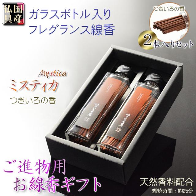 進物用線香・高級線香【ガラスボトル入り:ミスティカ つきいろの香 2本入り 化粧箱付】贈答用お線香 お盆・お彼岸・里帰りに