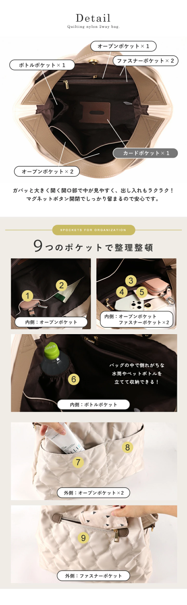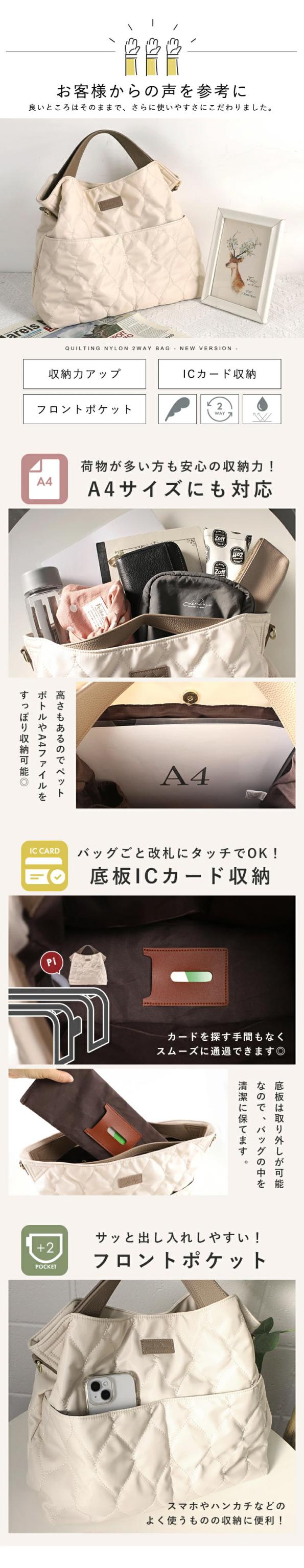 ショルダーバッグ トートバッグ ナイロン レディース 斜め掛け 軽量 2way ショルダー キルティング 大きめ A4 ポケット 多収納 ICカード入れ おしゃれ LIZDAYS リズデイズ 大人 ナイロンバッグ トート 肩掛け かばん 撥水 シンプル 通勤 通学 お出かけ【lz-71508】