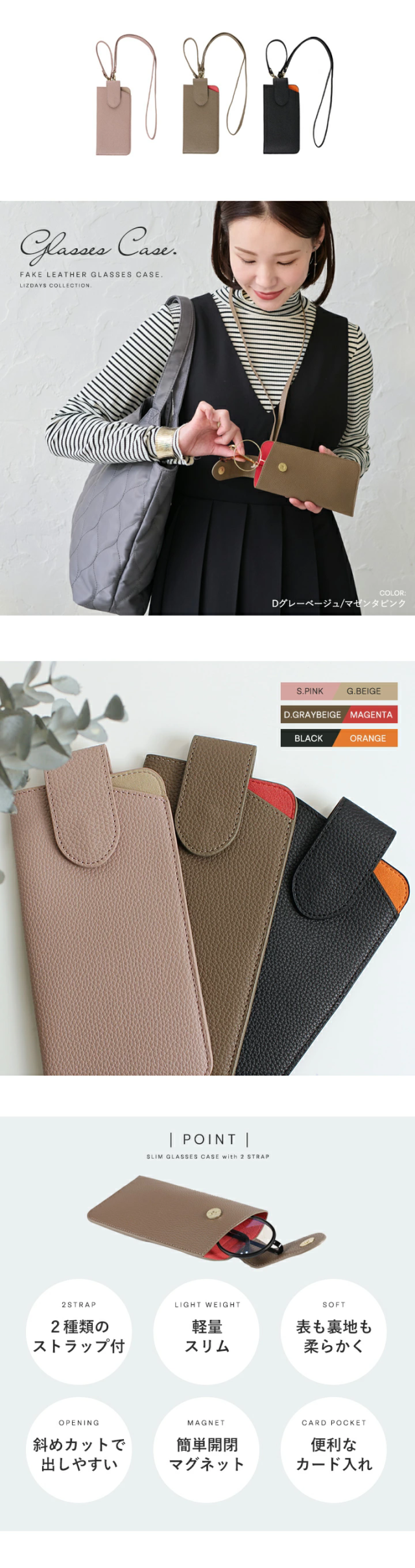 眼鏡ケース メガネケース スリム ケース カード入れ 軽量 軽い 薄型 パスケース ネックストラップ 首掛け ストラップ付き おしゃれ シンプル サングラスケース めがねケース コンパクト 合成皮革 メガネ入れ 眼鏡入れ 社員証 オフィス お仕事【lz-69402】