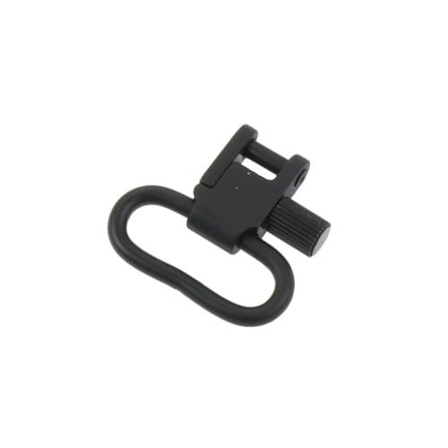 楕円形のカン部分は内径28mmで、エアガンだけでなく、ショルダーベルト用の金具としても使えます!金具部分は、つまみネジを回してロックを解除し、さらに回すことで接続部分を開ける仕組みです。