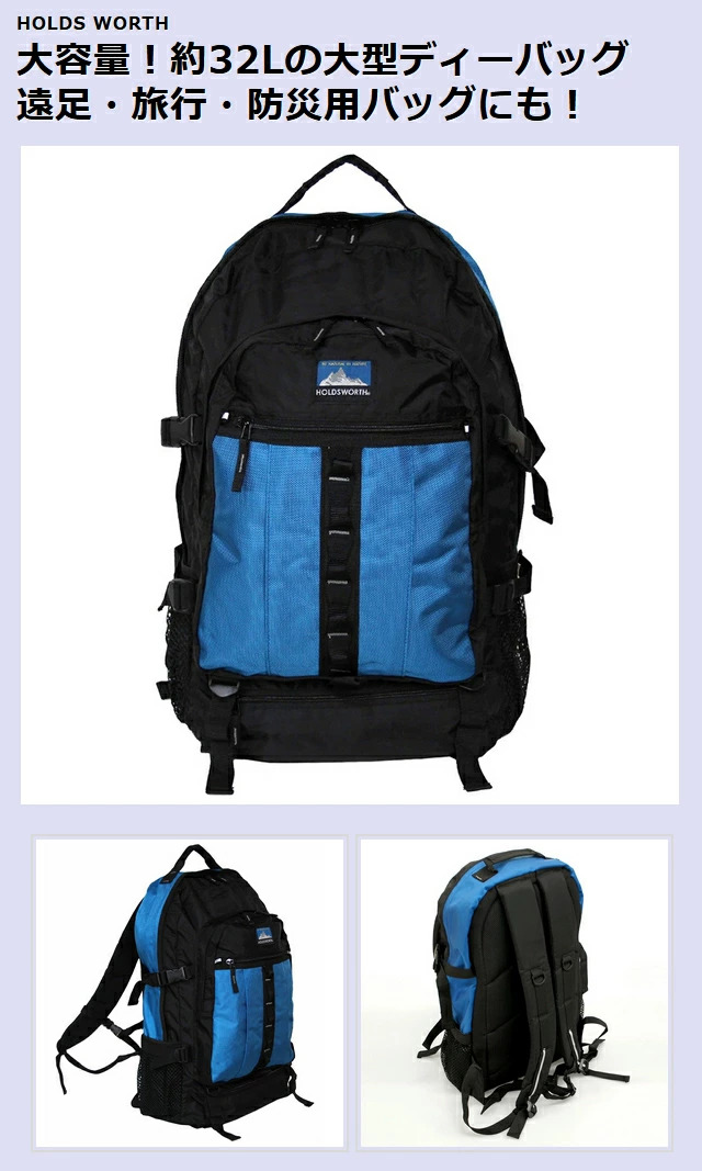 リュック メンズ 大容量 HOLDS WORTH 大容量 デイバック 32L 5568 通学リュック 通勤リュック 大型 遠足 旅行 防災用 避難用 林間学校 スポーツ 部活 男性用 ユニセックス 男女兼用 バックパック リュックサック 大きめ 黒 赤 青