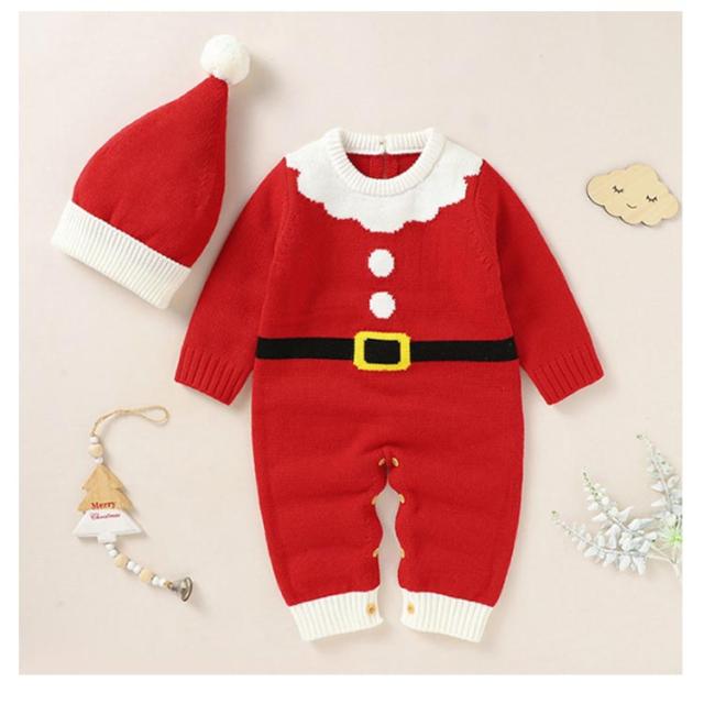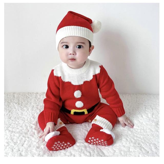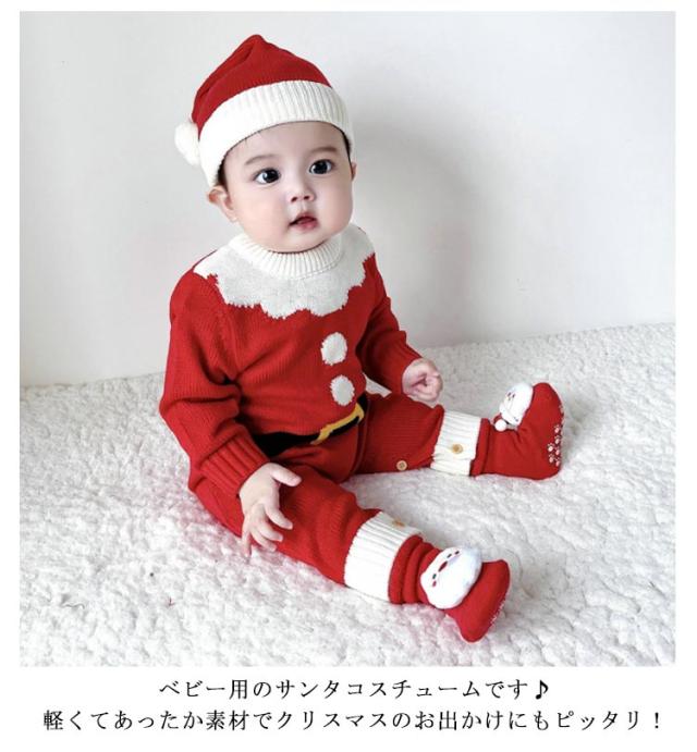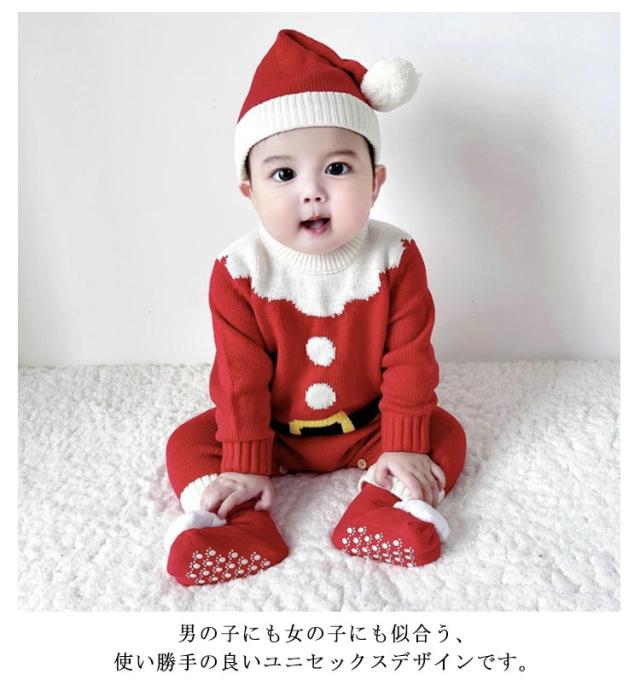 3点セット サンタ コスプレ ロンパース ベビー 着ぐるみ ニット クリスマス衣装 セットアップ もこもこ 帽子 靴下 ベビーフォト サンタコス ベビー服 カバーオール キッズ 子供 トナカイ 赤ちゃん 男の子 女の子 コスプレサンタ 66 73 80 90 cm
