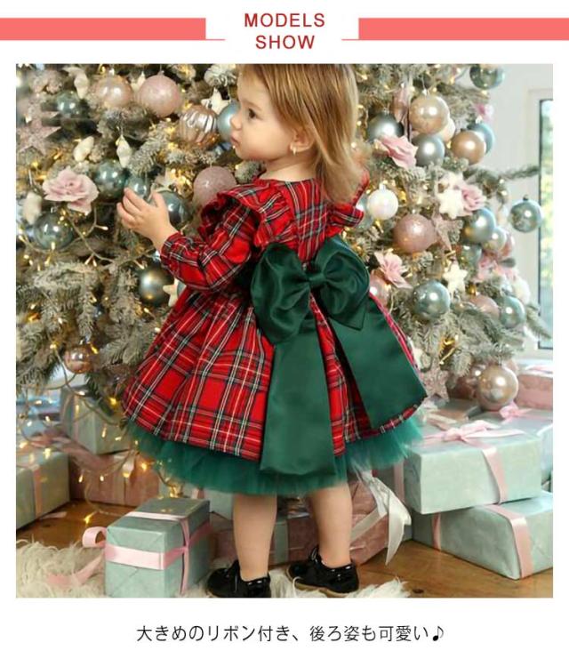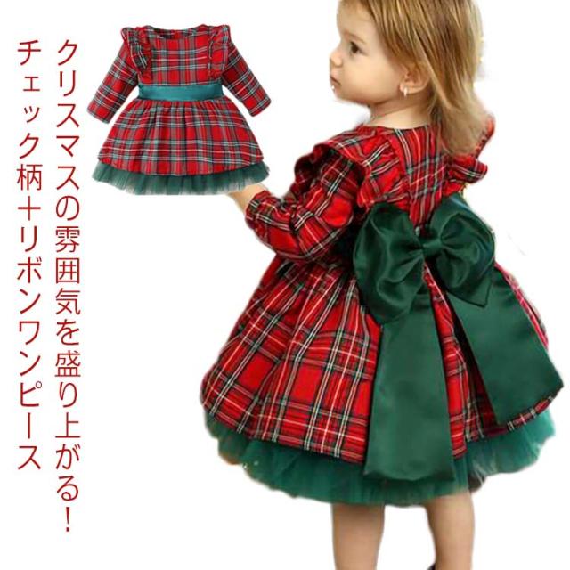 クリスマス ワンピース 女の子 ドレス Xmas サンタ クリスマスドレス チェック柄 リボン 子供ドレス ガールズ キッズ パーティー 発表会 結婚式 子供服 お呼ばれ お食事会 春 秋 可愛い ベビー服 プリンセスドレス お祝い 送料無料