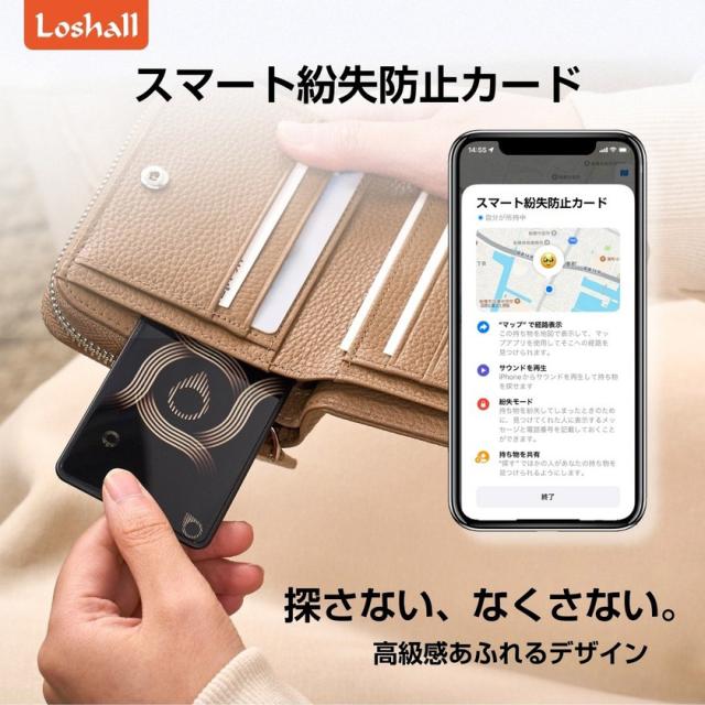 紛失防止タグ 【超長持ち!最大10年使える!ガラスミラー仕上げ】 MFI認証 正規品 カード gpsタグ スマートタグ 財布 社員証 勤務カード 忘れ防止 カード型 スマートトラッカー 忘れ物防止 gpsトラッカー Apple「探す」に対応 技適認証 月額不要 Loshall