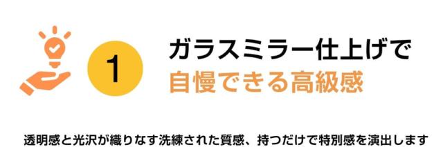 ・【洗練されたデザイン】 ガラスミラー仕上げで高級感を演出。持つだけで特別感を感じられるシンプルで洗練されたデザインです。・【ワイヤレス充電対応】 専用充電器を購入する必要がなく、ワイヤレス充電器で簡単に充電可能。電池交換の手間も不要です。