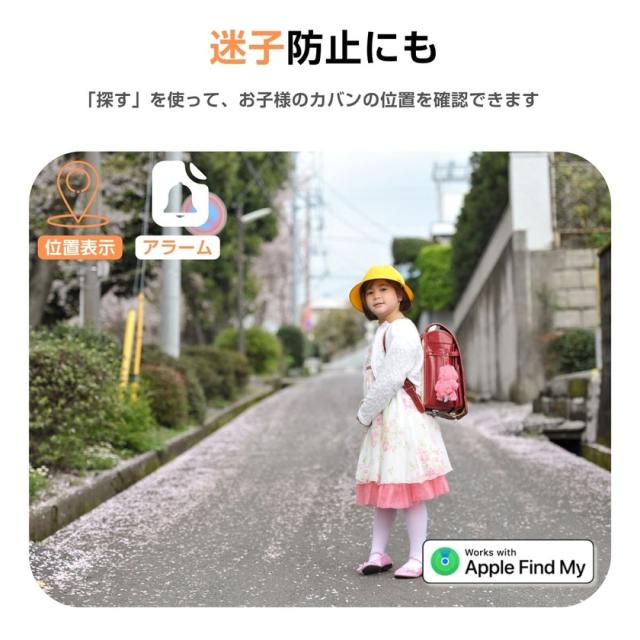 ・【iOS「探す」アプリ対応】 Appleの「探す」アプリに簡単接続。紛失防止機能で、距離が離れると通知を受け取れます。
