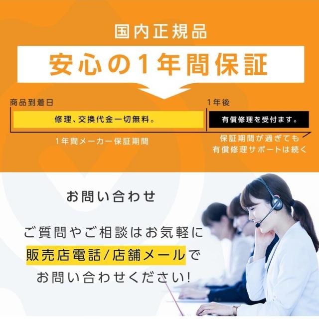 | 保証期間 | 1年間 本体のみ(フリーダイヤル電話サポート窓口あり) |