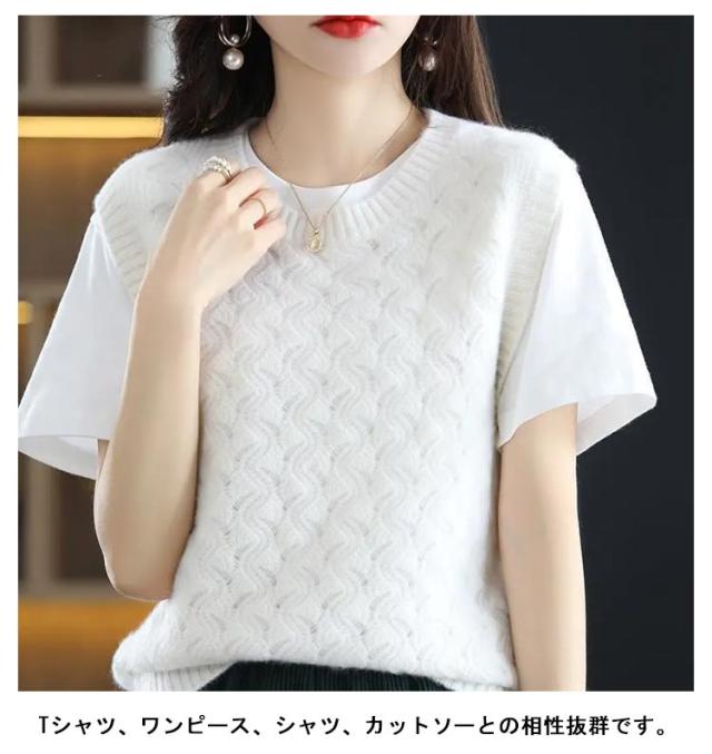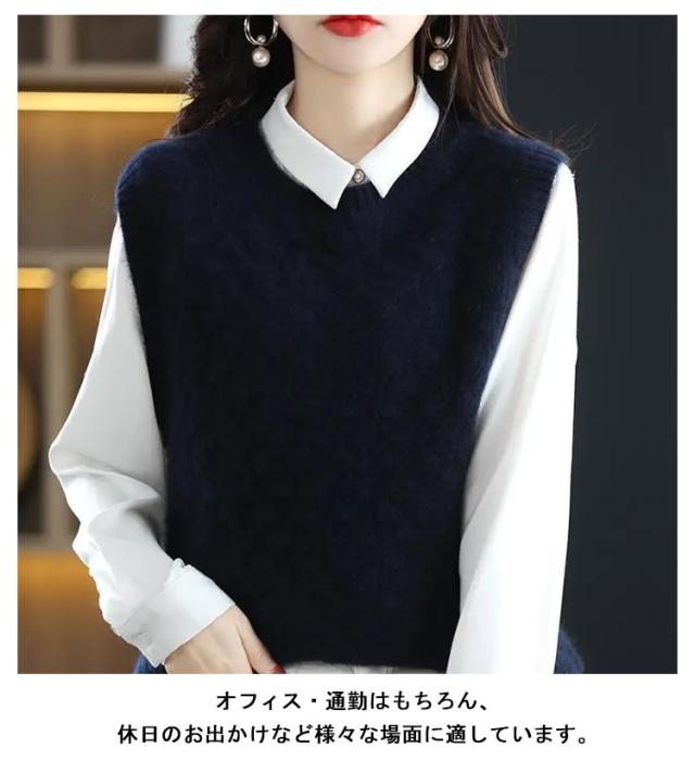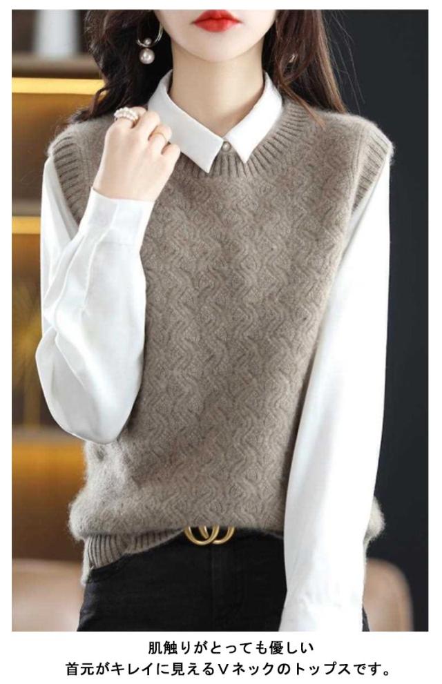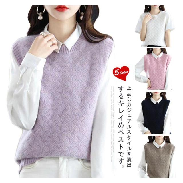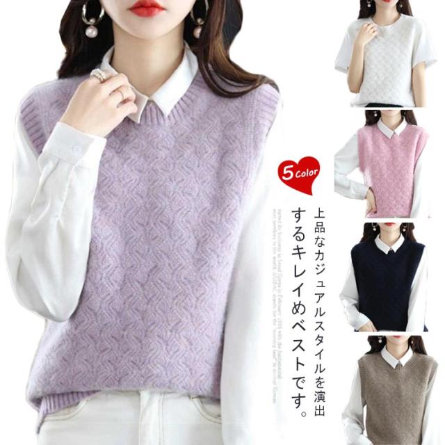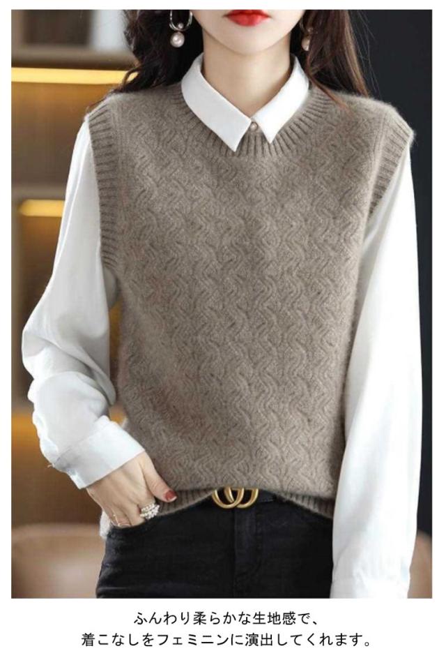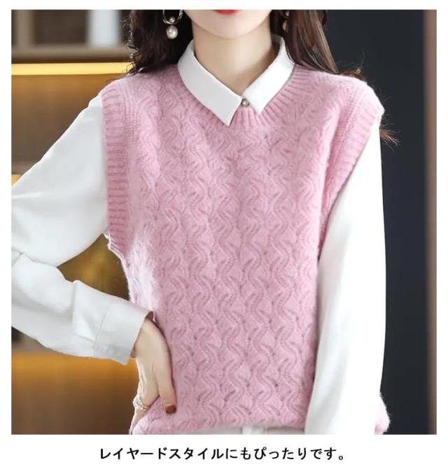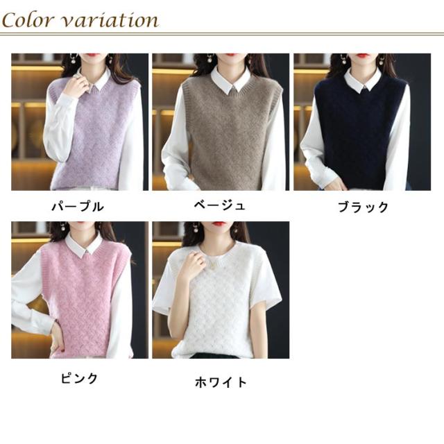 ニット ベスト プルオーバー トップス ベスト レディース ノースリーブ ショート丈 シンプル シャツ 長袖 無地 重ね着 レイヤード ゆったり 体型カバー リブ編み 大人 キレイめ カジュアル 秋 冬 30代 40代 S M L XL 2XL 送料無料