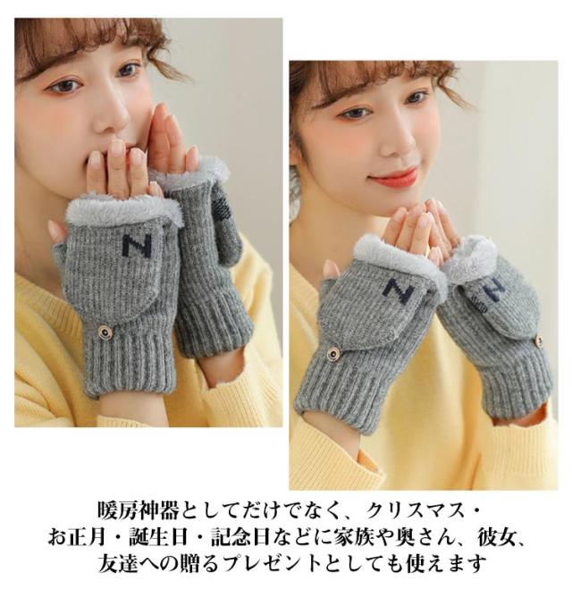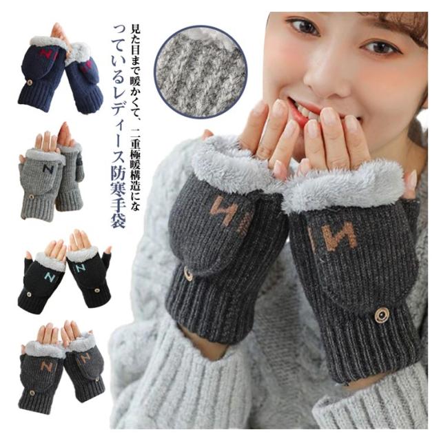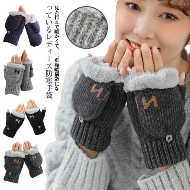 手袋 2way ミトン 指切り レディース ニット手袋 かわいい 暖かい 極暖 起毛 スマホ対応 指なし 指出し フード付き ミトン手袋 裏起毛 防寒 ふわふわ あったかい ニット 厚手 ミトン付き手袋 ジュニア 学生 通勤 通学 自転車