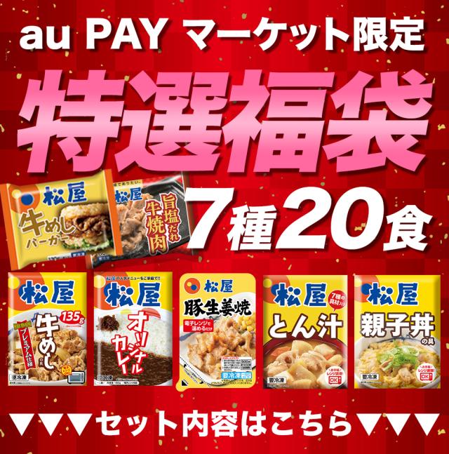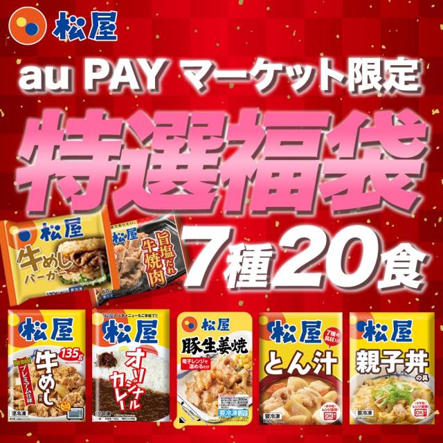 T au PAY マーケット限定 松屋 特選福袋 7種20食 2026 牛めし 牛丼 カレー まつや 受験生応援 牛丼 食品 グルメ 冷凍 冷凍食品 おかず 惣菜 業務用 お弁当 レンチン お試し 非常食 牛めし 牛肉 肉 牛丼の具