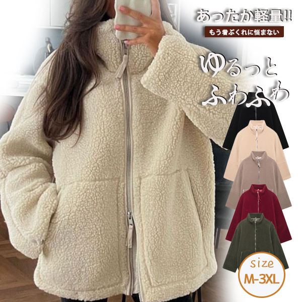 ボアブルゾン レディース パーカー ボアジャケット ボアコート ジャンパー 立ち襟 アウター ゆったり カジュアル ナチュラル きれいめ 体型カバー