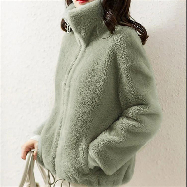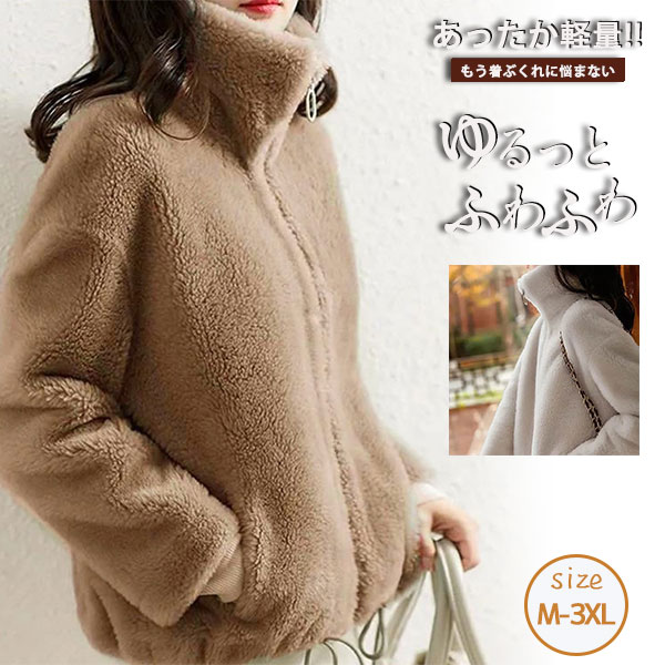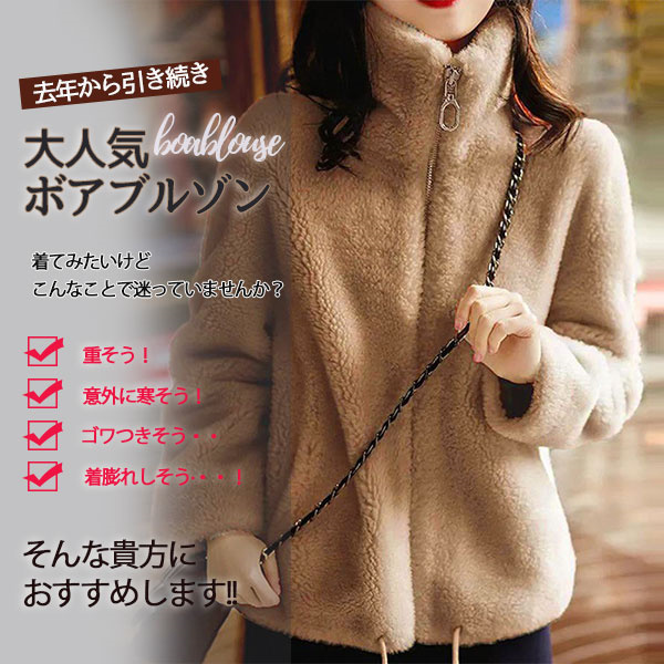 ボアジャケット ボアブルゾン レディース ボアコート 立ち襟 アウター もこもこ ふわふわ 暖かい ゆったり 可愛い 軽量 カジュアル フード付き
