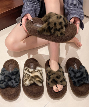 レオパードサンダルレディース もこもこあったかフラットシューズ 歩きやすい ふわふわ ルームシューズ 疲れない 寒さ対策かわいい秋冬靴美脚 ボアルームサンダル 外履きサンダル人気