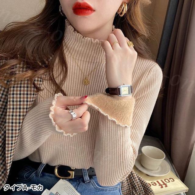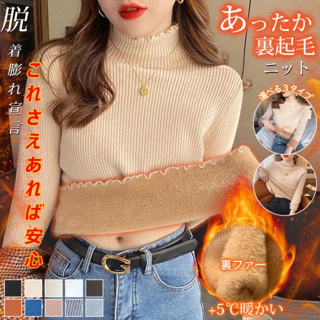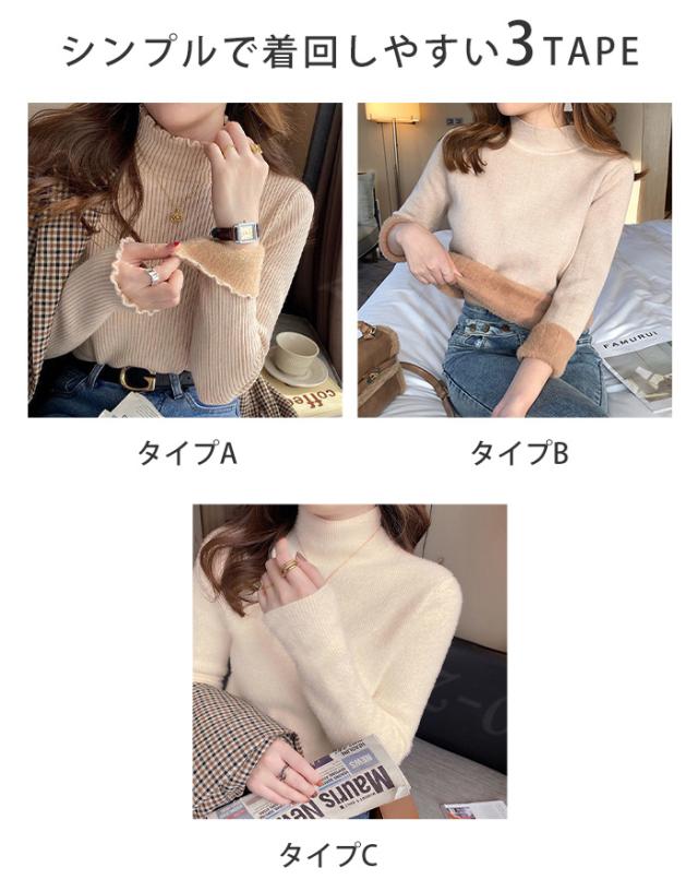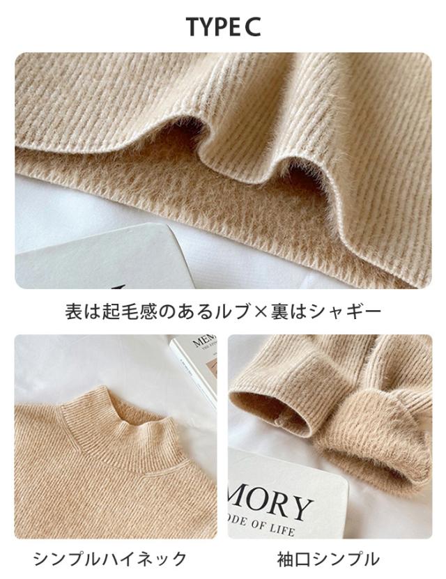 ニット トップス ニットセーター 裏起毛ニット ハイネック 春新作 3タイプ モックネック 裏ボア レディース 秋冬 長袖 きれいめ 暖か 防寒 上品 レイヤード 暖かい ふわふわもっちり シャギー 洗えるニット 入学式 入園式