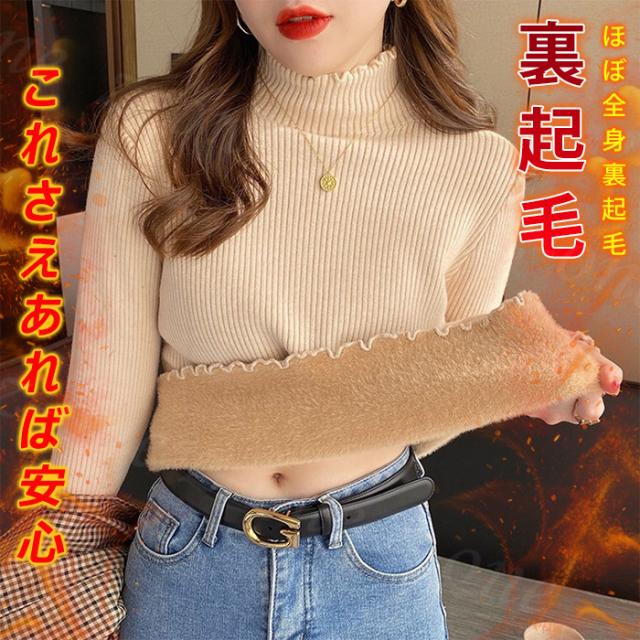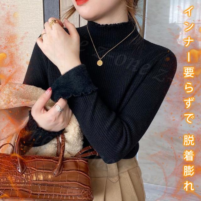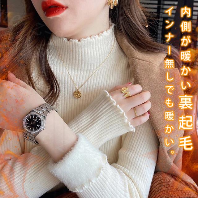 [関連ワード]裏起毛 ニット トップス レディース ハイネック セーター モックネック 裏ボア 秋冬 長袖 オフィス カジュアル きれいめ 暖か 防寒 上品 大人 レイヤード もっちり 保温