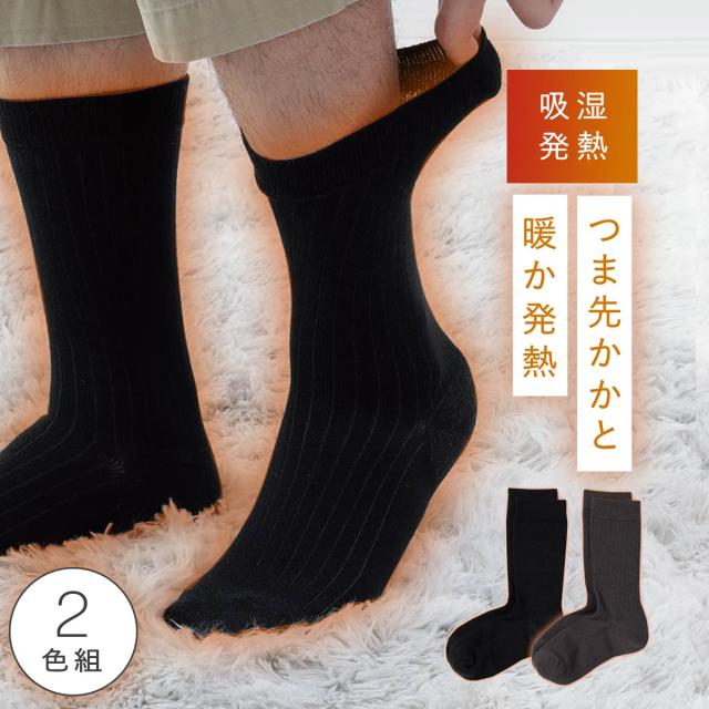 履き口 ゆったり 靴下 メンズ 冬 2色組 25-28cm 吸湿発熱 暖かい あったか つま先・かかと吸湿発熱ゆったりフィットメンズソックス 紳士用 男性用