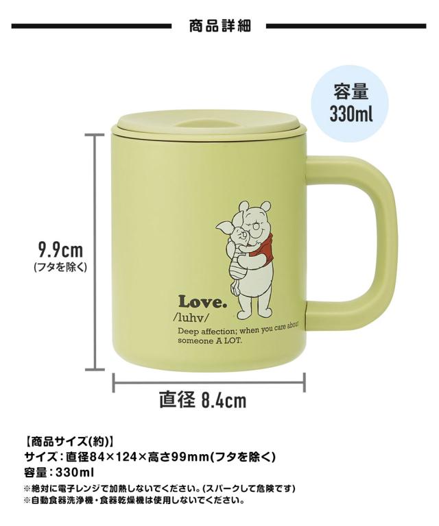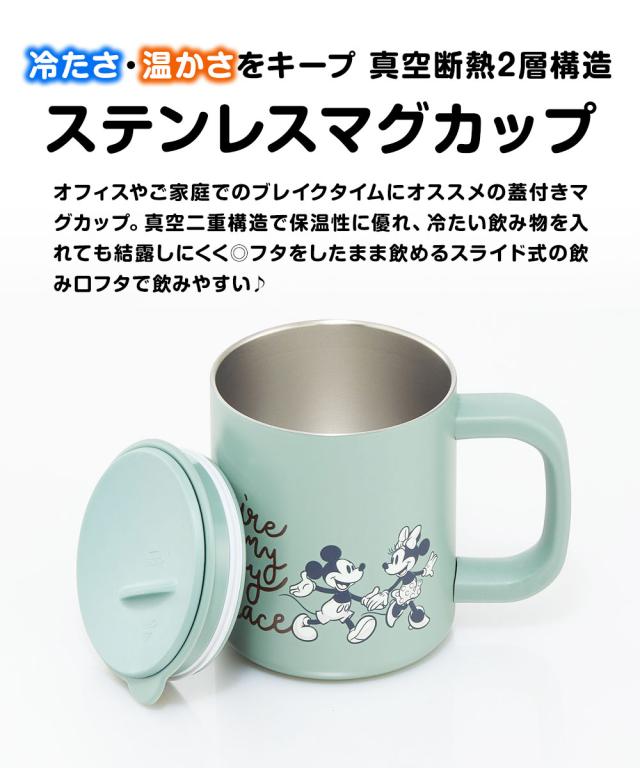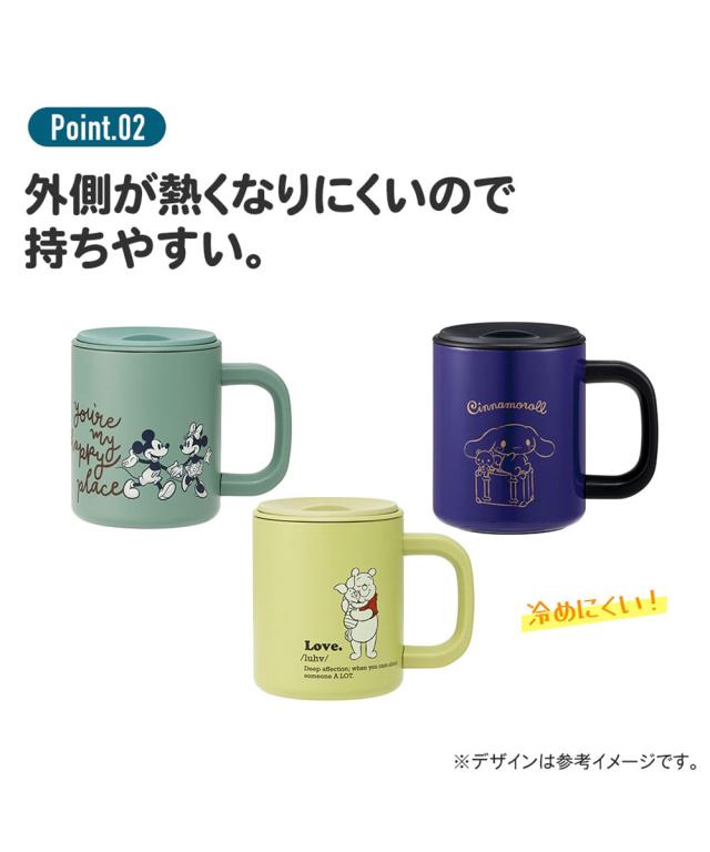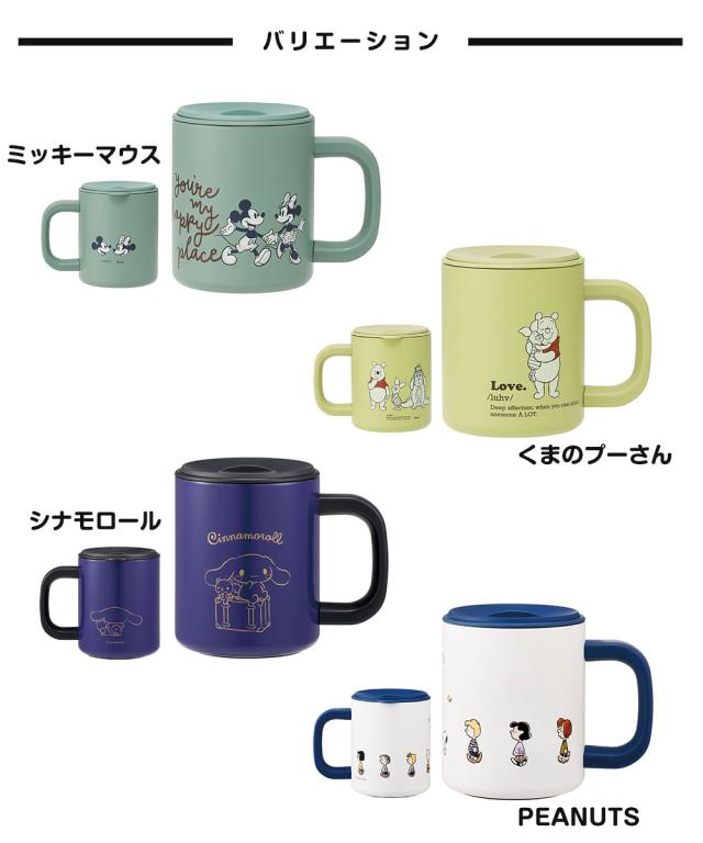 \今だけ10%OFF/ マグカップ フタ付き ステンレス ホット アイス 保温 保冷 結露しない 真空2層 持ち手付きパッキン付き かわいい キャラクター コップ デスクワーク オフィス スヌーピー プーさん ミッキー シナモロール 330ml STMG4N