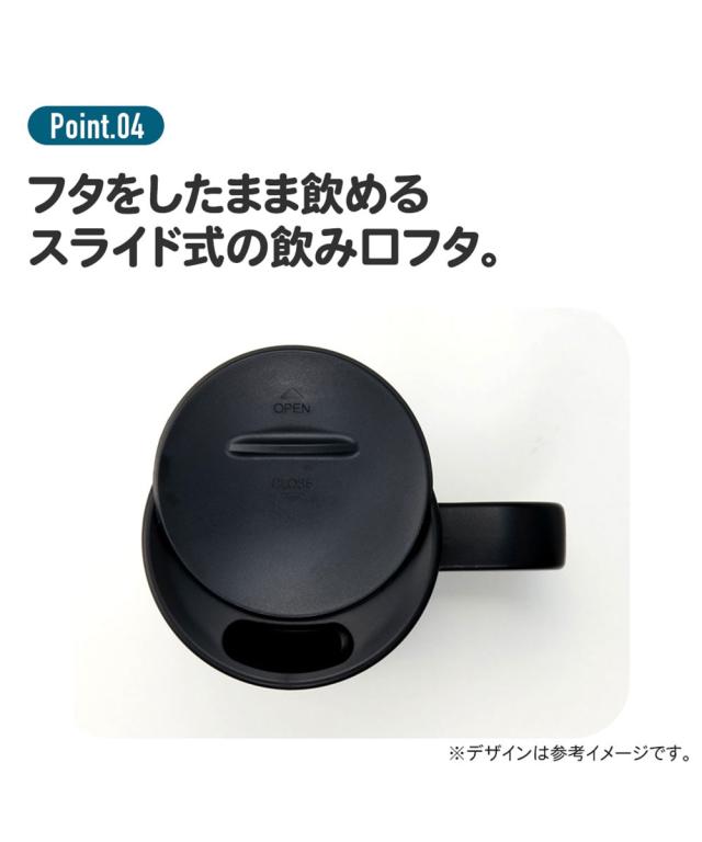 フタをしたまま飲めるスライド式の飲み口フタ。
