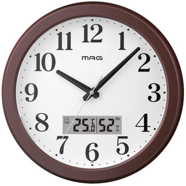 壁掛け時計 明暗センサー付き 夜間ライト自動点灯 ウォールクロック 直径30.8cm 温度計 湿度計表示付き