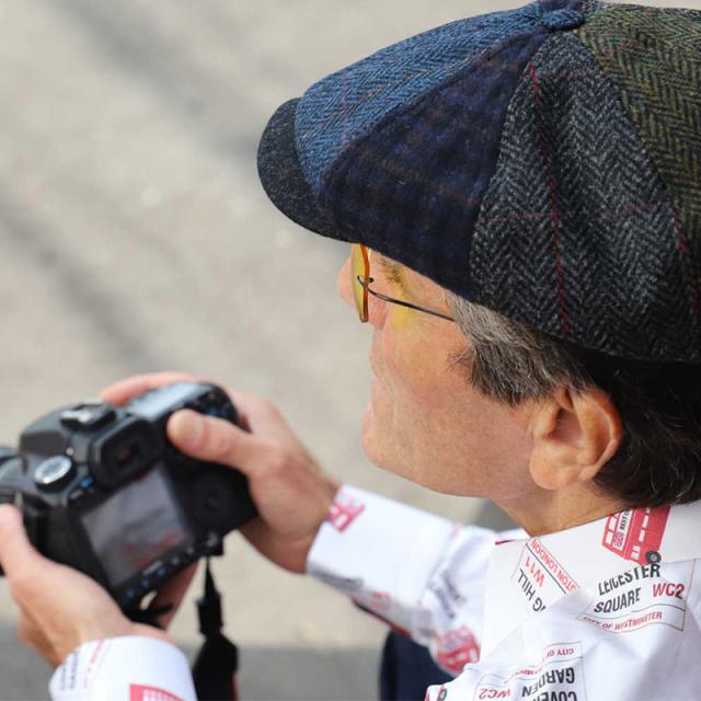 パッチワークデザインと、トップにシャーロック・ホームズ風のボタンが付いているのが実にユニーク。